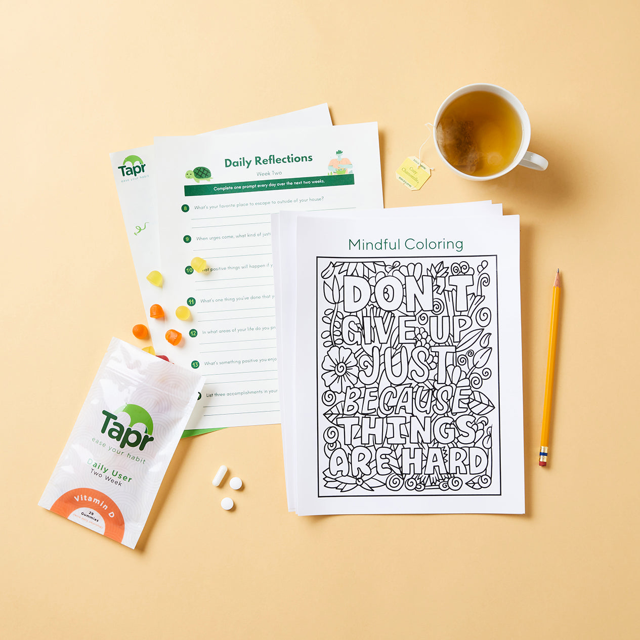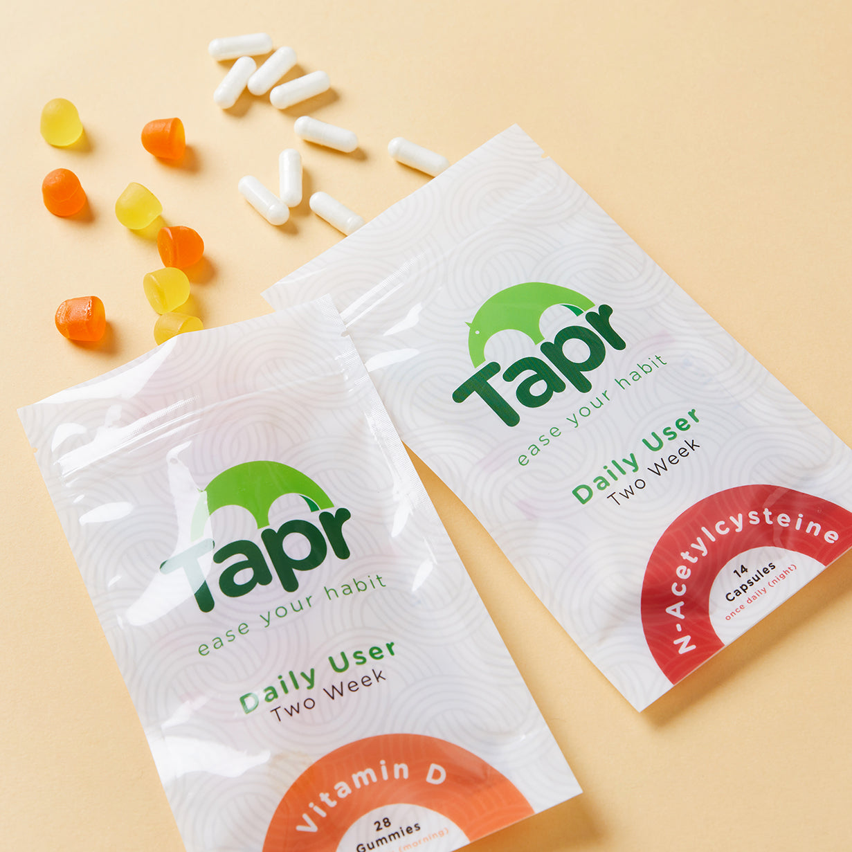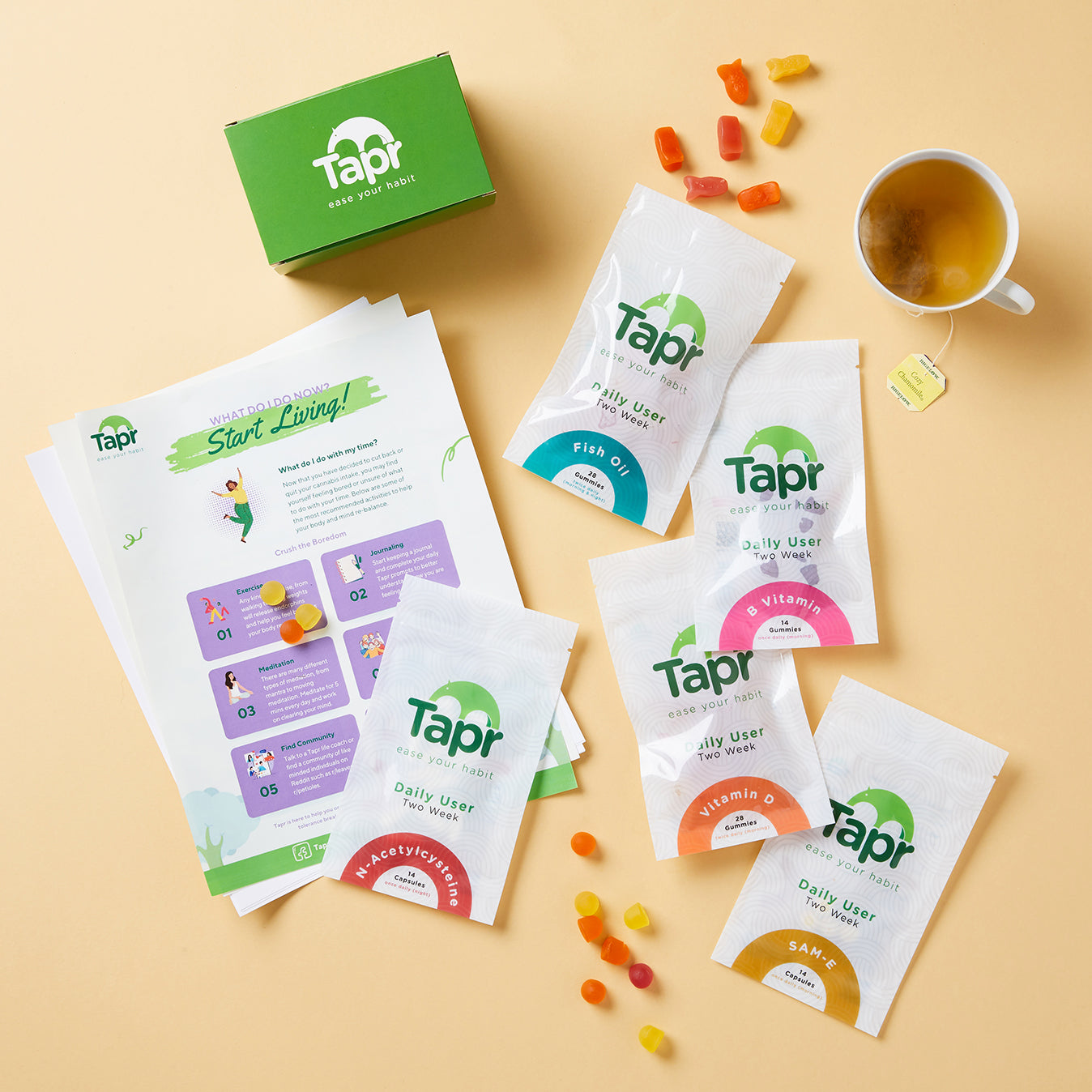 - Comprehensive Support: Tapr provides a 2-week supply of essential supplements and teas, enough to get you through the toughest phase of quitting. This package is tailored to support your overall health, manage intense withdrawal symptoms, and enhance your mood.